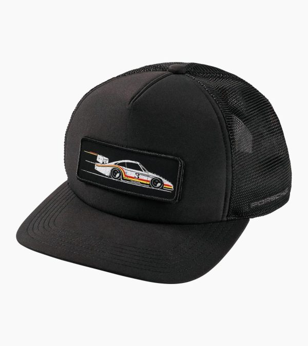 Exclusive trucker cap from Porsche x PUMA with removable Velcro patch on the front for different looks.A symbiosis of motor racing spirit and exclusive design: the stylish T-shirt marking the 50th anniversary of the North American tuning house ANDIAL, which was synonymous with the success of Porsche motorsport in the 70s and 80s in the U.S. With this trucker cap you get two styles in one: the front patch features the unique ANDIAL 935-L “Moby Dick” – which won the legendary 24-hour race in Daytona in 1983 – or, thanks to the removable Velcro fastener, the ANDIAL logo. The cap closure and the taping on the inside of the cap feature the iconic ANDIAL stripes. The Porsche branding on the left side completes the cool ANDIAL look.
