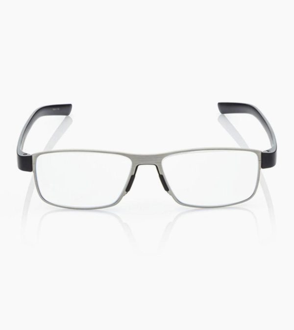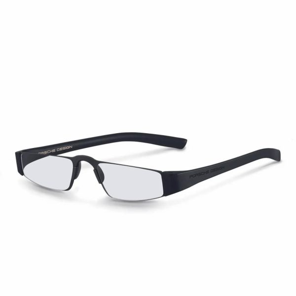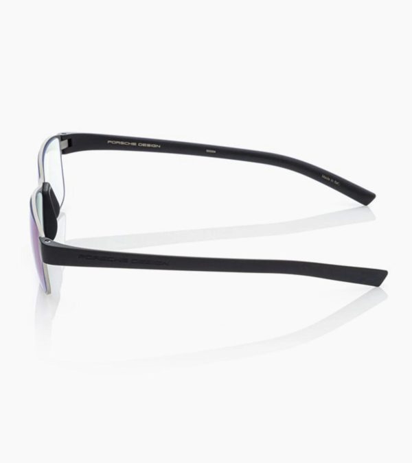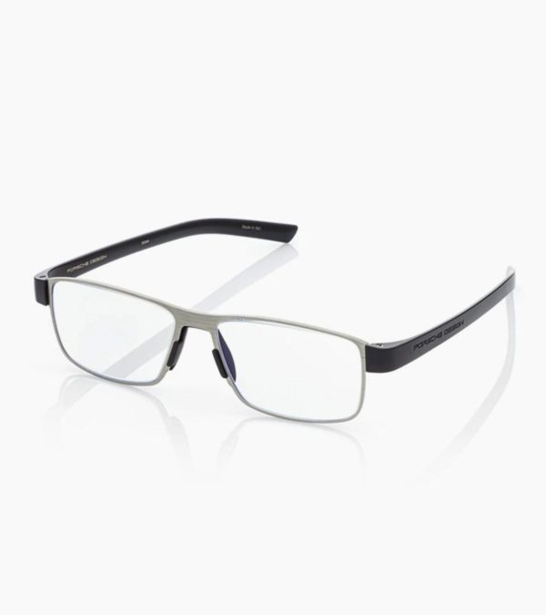 Exclusive reading glasses with blue light filter. Reduces eye strain when working on computer screens. Modern corrective frame made of stainless steel and plastic.Now available for the first time with protective blue light filter: The P´8815 is a Porsche Design reading tool that also sets standards in terms of well-being. The lenses contain a special blue light filter that reduces eye exposure to blue light and thus relieves the eyes, especially when working on computer screens for a long time. The lenses almost seem to float in the thin frame made of brushed stainless steel – in marked contrast to the wide, ergonomic temples made of high-tech polyamide with milled Porsche Design logo. When the reading tool is not in use, its innovative temple construction means it can fold extremely flat. Timeless design meets state-of-the-art technology.