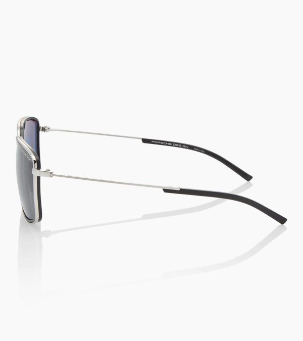 The high-tech, almost futuristic design of the sunglasses with their subtly squared aviator shape takes an unusual and innovative approach to design using a dual-layer material: high-performance RXP® and stainless steel. Matt finish materials are paired with high-gloss elements, tone-on-tone with color-blocking, striking features with elegant details. The result: Sunglasses that perfectly capture the spirit of the age, while still remaining timeless. Design that would please F. A. Porsche.