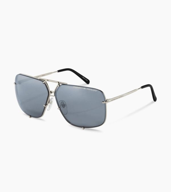 The new Porsche Design sunglasses with interchangeable lenses. Modern squared aviator form with exclusive quick-release fastener and lightweight 100% titanium frame.