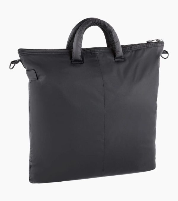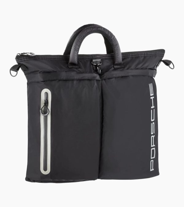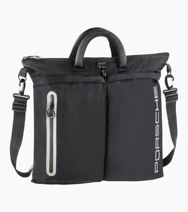 Compact, water-repellent Porsche golf sport bag with practical slide-in pockets and padded, detachable shoulder strap.The locker bag not only functions as a locker for your golf clothes, but also fits perfectly into one, thanks to its compact size. Its coated, water-repellent material can withstand a bit of rain and humidity in the changing room. Two extra slide-in pockets with zips also offer optimal protection for your valuables. The sport bag’s shoulder strap is softly padded, individually adjustable and even detachable. There is a ‘PORSCHE’ silicone print on the front.