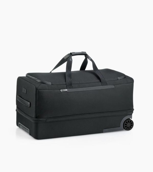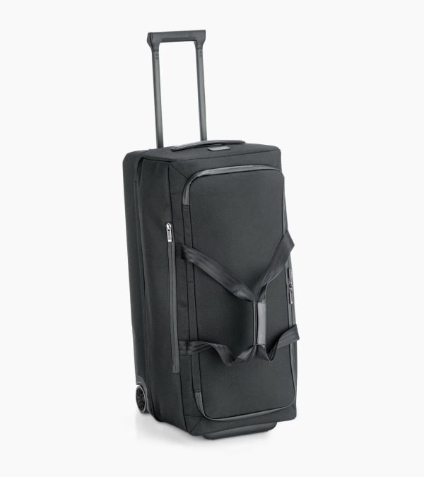Spacious, flexible trolley travel bag from Porsche Design, with two wheels and two separate compartments.Expertly crafted by Porsche Design for premium travel, this spacious rolling duffle bag combines water-resistant nylon and leather for unmatched durability. With multiple compartments, removable panels, and extendable handle, it offers clever organization and versatility for any trip. Compact yet roomy, it’s the perfect functional carry-on or checked luggage.