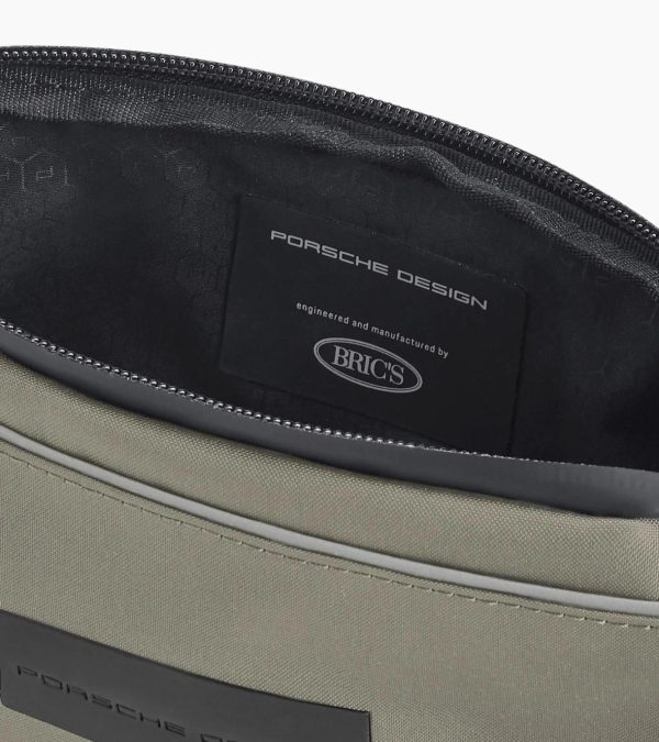 Small accessory bag for cell phones, charging cables, etc. The pouch can be worn as a modern men’s bag or as a supplement for the Urban Eco backpacks.Now also in Stone Grey! The Porsche Design Urban Eco series combines style and sustainability, functionality and flexibility, business and travel. The modern bags and accessories won’t end up in the drawer so they’re perfect for modern everyday life. Like the Porsche Design Urban Eco pouch. The small accessory bag can be carried on its own by the removable handle loop—but as a modular extra, it also perfectly complements the backpacks in the series which have matching V-attachment rings on the shoulder straps. Either way, the little bag has big style: The mix of water-resistant polyester and coated fabric are exciting, while laminated zippers, black metal fittings, and a rubberized logo patch create a technical, clean look. In the inner compartment of the pouch, there is room for mobile devices and keys or even a charging cable—whatever you need. Sometimes less is more.