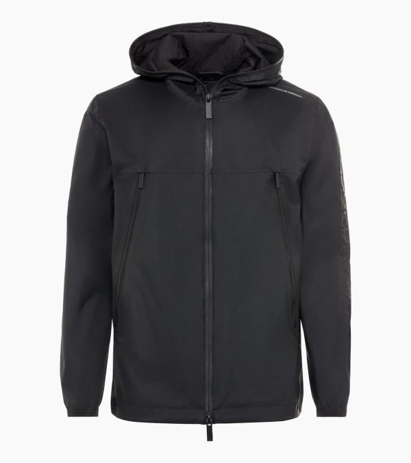 Water-repellent windbreaker from Porsche Design with elastic cuffs.Sporty in wind and weather conditions: the windbreaker with rainCELL® technology is a must-have for any outing. The fully closable zip extends from the hem to the hood. The extended zips on the pockets are striking style elements. The tonal Porsche Design logo on the left sleeve lends the jacket an elegant touch. Elastic cuffs and internal zip pockets provide additional comfort and convenient storage space. The sophisticated design is rounded off by the branded zip pullers.