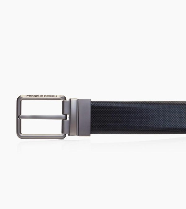 The universal men’s accessory: Elegant, reversible 35 mm business belt: One side is black smooth leather and the other is black or dark brown textured leather.One belt, two ways to wear it: The stylish Porsche Design reversible belt made of exclusive Italian leather can be worn differently to match any outfit. The basis for all the options is smooth black leather and the second option offers a choice between black or dark brown with a subtle textured surface. A matt brushed pin buckle in titanium color with a Porsche Design logo engraving adds that extra something to this belt, making it a versatile accessory for everyday wear.