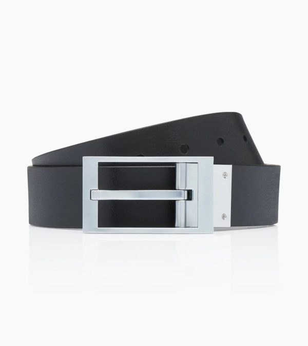 Form follows function. This guiding principle is masterfully embodied in the Porsche Design Business Belt Reversible 35.One belt, two wearing options: the superb Porsche Design Reversible Belt made of finest, Italian leather matches any outfit. All variations show black smooth leather as defined standard, the reverse side offers dark brown, cognac or carbon as a second option. The striking pin buckle in brushed chrome finish and with its decent Porsche Design engraved logo completes the design of this every day accessory.