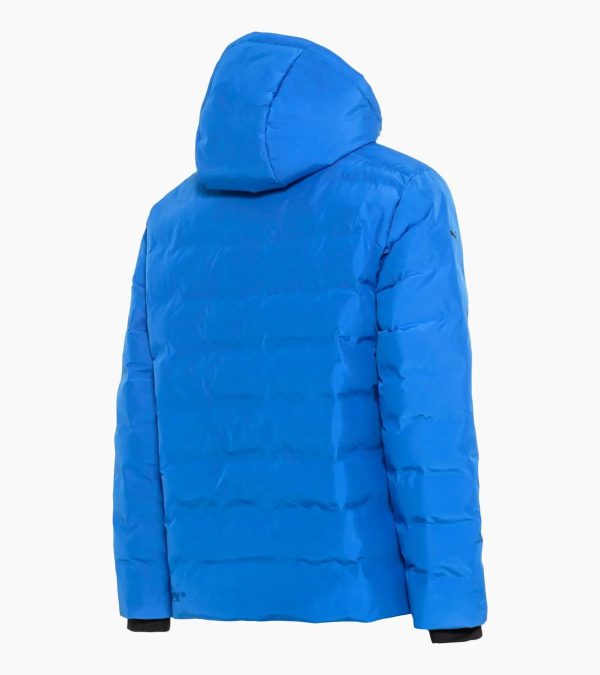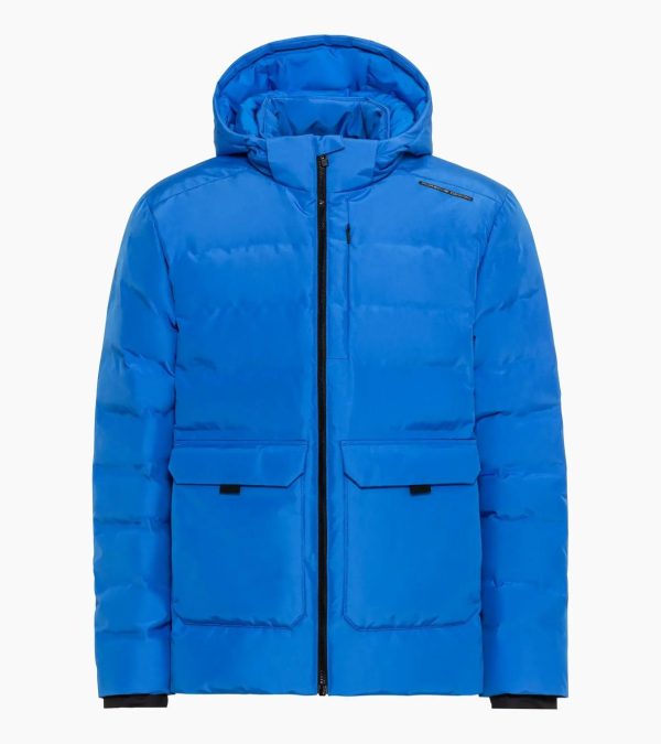 Down-free lined Porsche Design jacket made of innovative Sympatex® material. Waterproof and windproof.Smart and stylish throughout the winter: the padded jacket made of innovative three-layer material with stormCELL® technology, waterproof lamination and a breathable membrane is a real must-have for the cold season. A warm UNIFI fibre filling is hidden behind the dynamic quilting. The fit and ventilation can be adjusted as required using the full-length zip with a mesh strap underneath. The hood is detachable. Inner cuffs with thumb holes protect against moisture. The inner loop with Porsche Design branding is a real highlight and can be used to carry the jacket over the shoulder when the temperature rises. The hidden breast pocket with zip and the fleece-lined pockets at hip height, which are accessible via a magnetic fastening from above and a zip from the side, are also cleverly designed – perfect for keeping your hands warm. Inside there is a zip pocket and a bonded pocket, in which smaller valuables can be kept safe. The back hem of the puffer jacket is decorated with the embroidered Sympatex® logo.