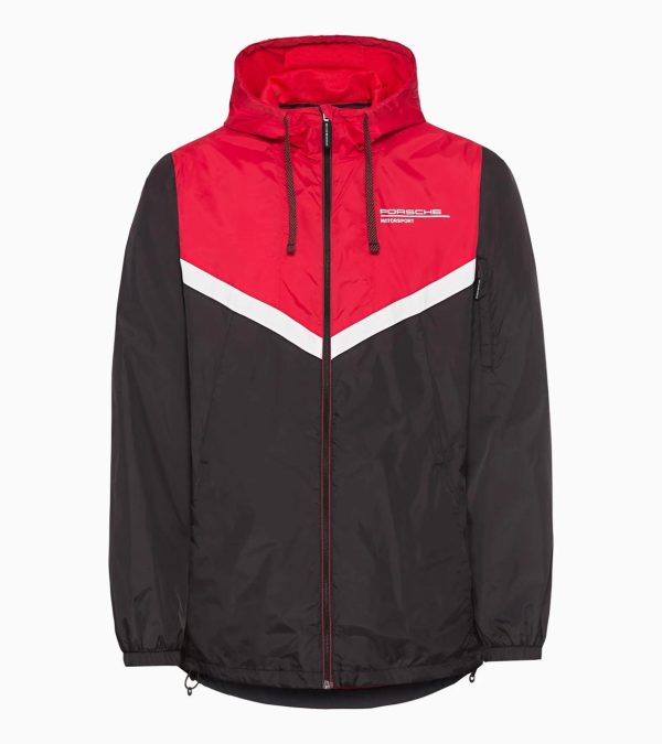 Unisex windbreaker with hood.Textile team spirit: The light windbreaker with a practical hood with elastic closure and cords is the perfect companion in stormy weather. And makes it clear at first glance just which team you are rooting for on the race track.