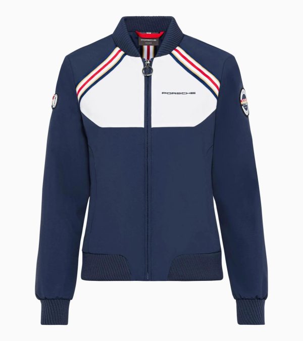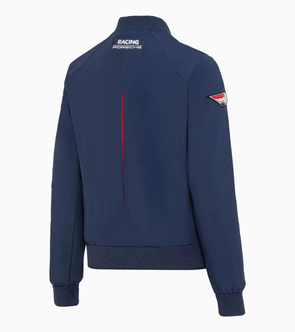 Women’s jacket with baseball collar.Casual but stylish: Women’s jacket with baseball collar from the Racing collection, inspired by the legendary Porsche 956in Racinglivery. The embellished belt, Racing logo and red pleat round off this piece perfectly.