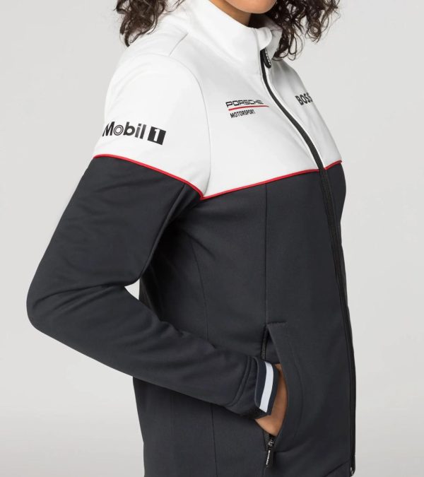 Lightweight softshell jacket with stand-up collar inspired by the original Porsche Motorsport teamwear. Waterproof and breathable.Softshell jacket with stand-up collar, zipped side pockets, fleece lining and cuff-adjusters. Design based on the original Porsche Motorsport team clothing.