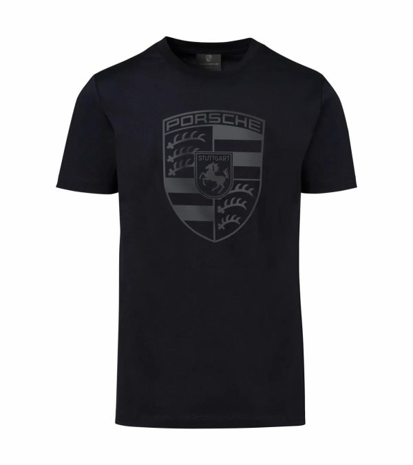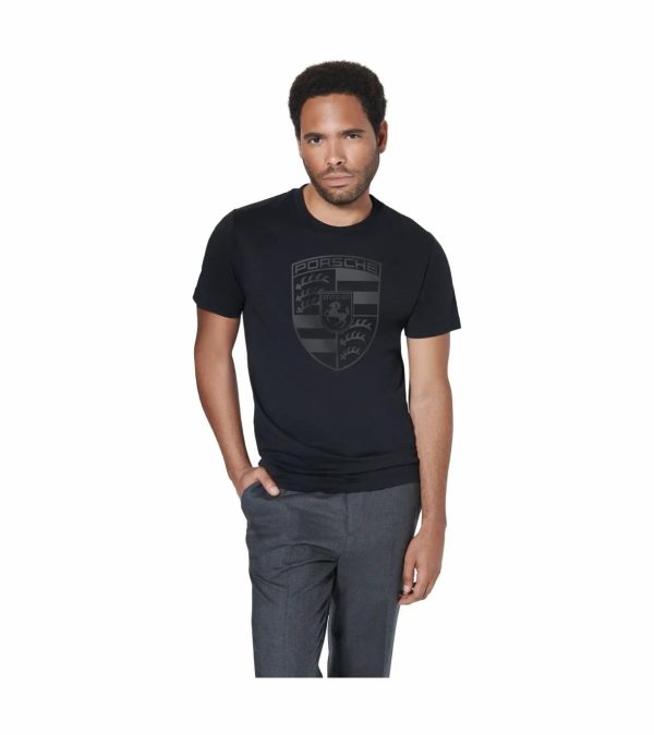 Sporty men’s short-sleeve T-shirt with large Porsche crest as a matt, tonal print on the chest.Sporty men’s short-sleeve T-shirt with large Porsche crest as a matt, tonal print on the chest.