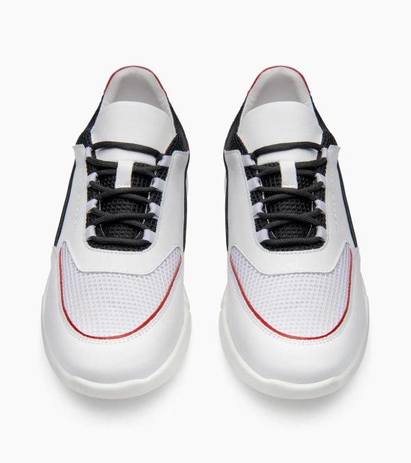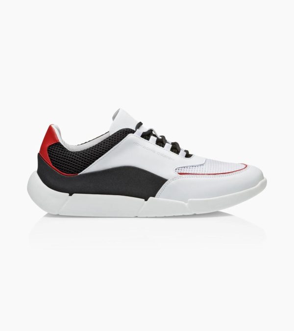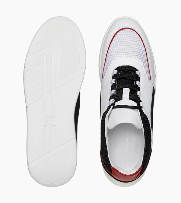 Dynamic men’s sneakers in a modern color-blocking design. Blend of sporty mesh, Dual and premium nappa leather. Ultra-lightweight ergonomic sole.Daily wear for the urban lifestyle: the Porsche Design MetroRacer Calf with trendy color-blocking. This sneaker features a dynamic appeal, bright summer colors and maximum comfort. The distinctive, ultra-lightweight sole with a matte finish is a Porsche Design exclusive: the silhouette is based on a running shoe and offers lightweight cushioning. The rounded heel enables an optimal heel-to-toe movement. Panels made of exclusive Dual leather – an innovative material with the look and feel of an asphalt track – underscore the modern blend of sporty mesh and premium nappa leather. Wherever you go, this men’s shoe is always the perfect fit. DETAILS: Men’s sneaker with trendy color-blocking. Box calf leather, Dual leather and mesh panels. Ultra-lightweight, ergonomic sole with a matte finish.