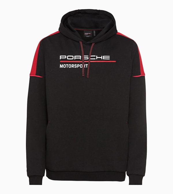 Men’s plush hoodie with large ‘PORSCHE MOTORSPORT’ signet.Textile team spirit: This relaxed hoodie with large ‘PORSCHE MOTORSPORT’ signet from the Motorsport Fanwear Collection makes it clear at first glance just which team you are rooting for on the track.
