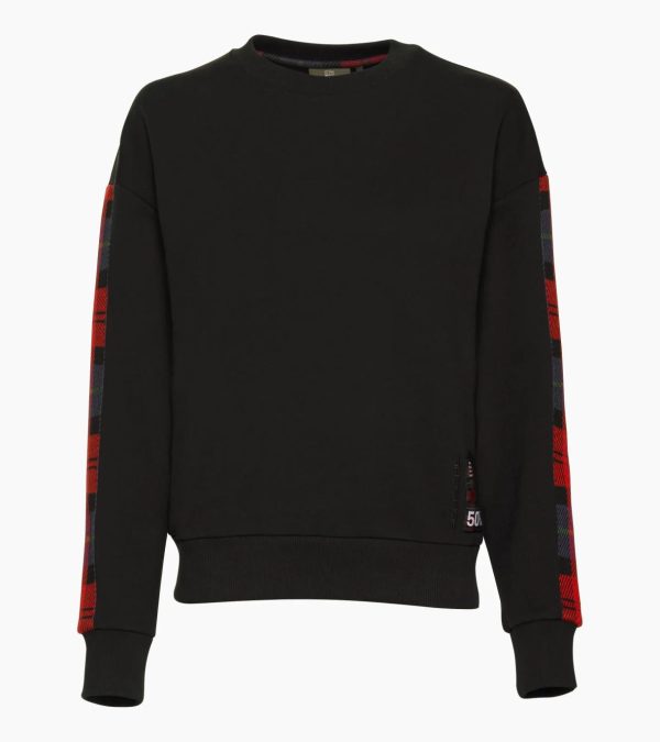 Comfortable women’s pullover from Porsche with a wide knitted collar and slightly overcut shoulders.The Turbo No. 1 Collection delivers Porsche performance with a chequer pattern as a tribute to the interior of the first 911 Turbo. The slightly overcut shoulders, wide knitted collar and chunky-knit hem give the pullover a modern look. The story label on the front side hem edge and the rising, embroidered Porsche lettering next to it add a special highlight. The detailed design is underlined by the stripes in the characteristic chequer pattern along the sleeve and the 3D Porsche/Turbo print below the neck hole on the back.