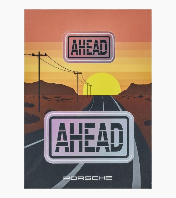 Exclusive sticker set from Porsche with striking motifs from the AHEAD road trip. UV and water resistant.Road trip meets lifestyle: the AHEAD Collection combines pioneering spirit and a thirst for adventure with iconic design. The limited edition No. 1 sticker set is inspired by the most striking places on the South-West road trip – from California to Nevada, stopping in Los Angeles and Las Vegas and passing through Death Valley and Palm Springs. Comprising 10 stickers, 5 large and 5 small, they are UV-resistant, waterproof and weatherproof, making them perfect for any kind of travel luggage. Exclusive effects such as the mirror finishing and the colourful holographic look give each sticker a unique character. The sticker set is rounded off by the printed backs of the sticker sheets, which when put together form the AHEAD road map.