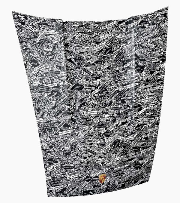 Original bonnet of the historic Porsche 911 (G model) in the design of the 911 GT3 R camo livery. Magnetic, with hanging device for wall mounting.A piece of Porsche history for your home: the bonnet of the Porsche 911 (G model) in the design of the 911 GT3 R camo livery is both an impressive decorative object and a magnetic board. The Porsche Crest completes its true-to-original, stylish design.