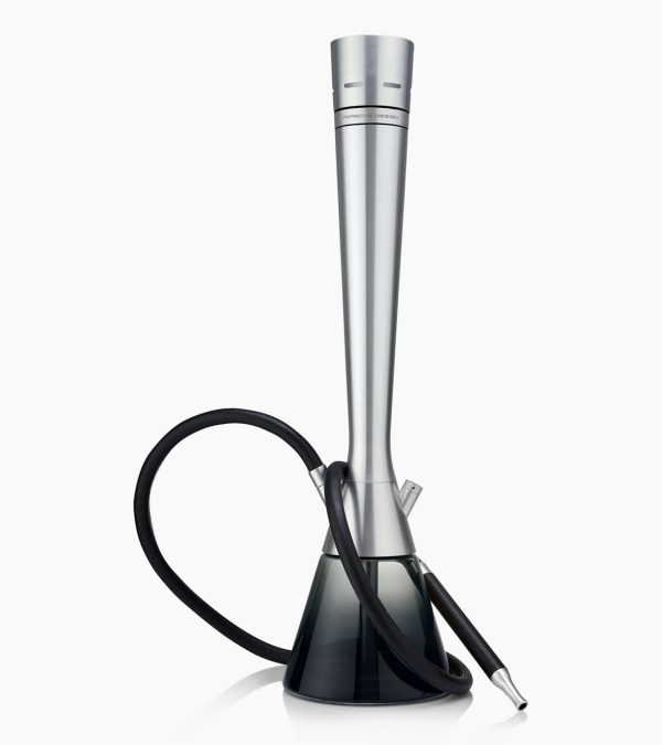 The exclusive Shisha 2.1 in the iconic Porsche Design style.The Shisha 2.1 offers even more exclusive smoking experience in distinctive Porsche Design iconic style. The bowl is made of solid, hand-blown glass in dark grey colour. The brushed, anodized aluminium of pipe steam, base, valve, wind shield and mouthpiece offers an exciting ahead of it’s time look. The hose in leather optic and the tobacco head out of heat-resistant ceramic add the finishing touch of perfection to this high end product. The Shisha 2.1 is very easy to clean thanks to its intelligent design. Made in Germany. Total height: ca. 730 mm, width (as well as the bowl diameter): ca. 200 mm.