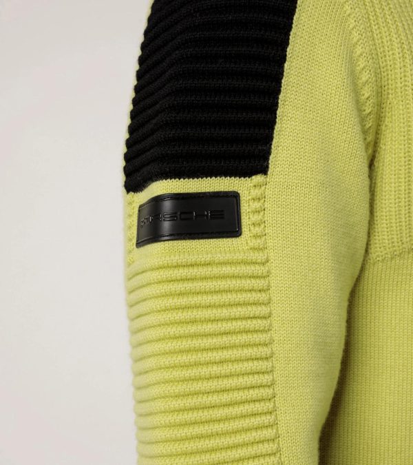 Exclusive half-zip knitted pullover in a sporty, technical look. With high ribbed collar and half zip.A perfectly timed pit stop: the new PORSCHE HEAD Collection brings both a breath of fresh air and fresh designs to winter sports. Inspired by the chequer pattern as a tribute to the interior of the first 911 Turbo, this exclusive collection offers the perfect gear for ski and Porsche enthusiasts. The sporty and fashionable half-zip knitted pullover combines style and functionality. it is a real eye-catcher, featuring a high ribbed collar and decorative ribbed patterns on the shoulders and sleeves. The front yoke and the half zip with high-quality SAB® zip complete the design. Whether on the slopes or in the ski hut, this pullover always ensures an elegant appearance and will keep you pleasantly warm.
