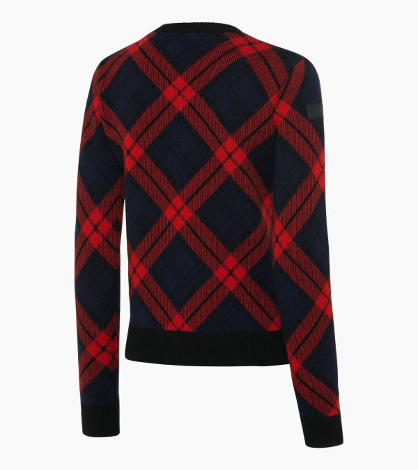 Exclusive ski pullover for women in Porsche Turbo chequer pattern. Featuring a crew neck and a woven Wishbone loop on the left sleeve cuff.A perfectly timed pit stop: the new PORSCHE HEAD Collection brings both a breath of fresh air and fresh designs to winter sports. Inspired by the legendary Porsche Turbo, this exclusive collection offers the perfect gear for both ski and Porsche enthusiasts. The feminine-cut ski pullover features the iconic Porsche Turbo tartan, paying tribute to the interior of the first 911 Turbo. It keeps you warm and offers comfort both on and off the slopes. The crew neck with ribbed pattern as well as ribbed sleeves and hem underline the smart design. The right sleeve is adorned with the Porsche logo, while the woven Wishbone loop and the label on the left sleeve cuff add sophisticated design details.