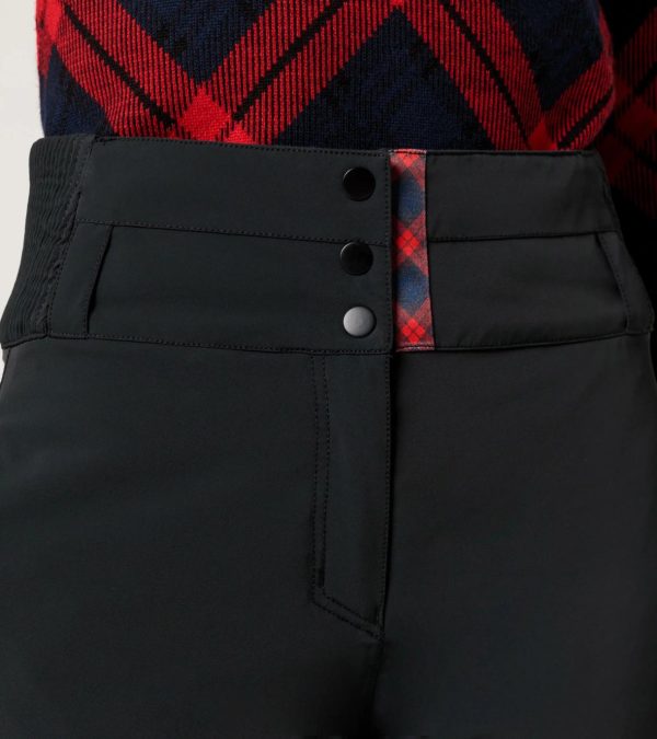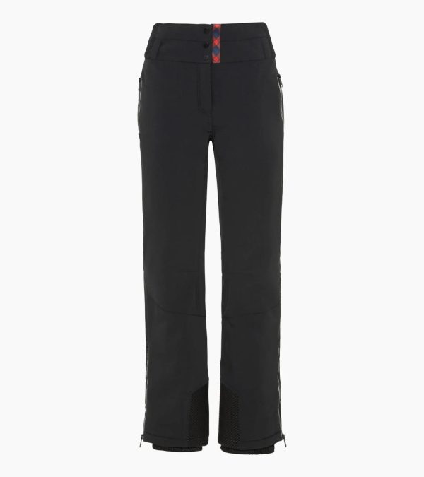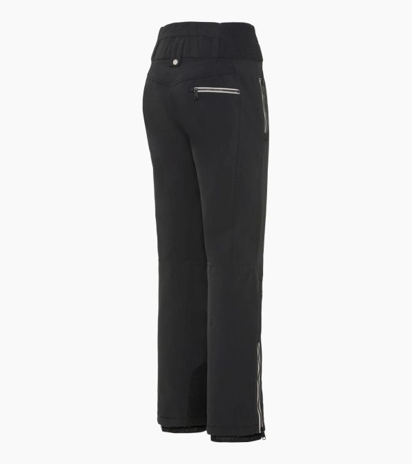 Women’s designer ski trousers from the exclusive PORSCHE HEAD Collection. High-waist fit. Warmly lined, wind and water repellent. With ventilation and cut protection.A perfectly timed pit stop: the new PORSCHE HEAD Collection brings both a breath of fresh air and fresh designs to winter sports. Inspired by the legendary Porsche Turbo, this exclusive collection offers the perfect gear for both ski and Porsche enthusiasts. High-waisted Porsche Turbo ski trousers combine sporty chic with performance on and off the slopes. The Turbo chequer band on the front adds an eye-catching design detail, while the waistband with belt loops and gathered elastic inserts ensure a comfortable fit. A fly with snap fasteners in the iconic tartan design – inspired by the interior of the first 911 Turbo – and hooks, pockets and legs with high-quality SAB® zips as well as Schoeller® cut protection on the inside of the trousers provide additional protection and functionality. The integrated snow skirt and fully sealed seams ensure optimal comfort.