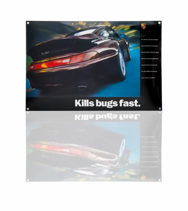 The advertising slogan “Kills bugs fast”, which highlights the speed of the Porsche 993 Turbo, was dreamt up by the San Francisco advertising agency Goodby, Silverstein & Partners.