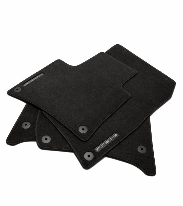 Upgrade your Porsche Cayenne interior with our luxurious four-piece floor mat set in Umber. Each mat is meticulously crafted to complement your vehicle’s aesthetics, featuring a high-quality Nubuk edging and an intricately inlaid, silver-embroidered ‘PORSCHE’ lettering. Available in various interior colors to match your personal style, these mats not only enhance the look of your vehicle but also offer durability and protection for your vehicle’s flooring.