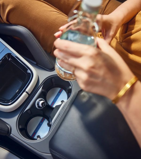 The Car Coaster set includes two coasters designed specifically for Porsche cupholders, each with a diameter of 81 mm, available in four carefully selected designs. With a rubber-coated underside to prevent slipping, the coasters provide a secure fit within the cupholder. They feature an overflow edge for added protection against spills. Additionally, their versatile design allows them to be used outside the vehicle as drinks coasters, offering protection for surfaces from scratches, stains, or moisture damage.