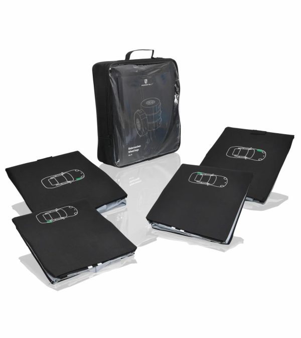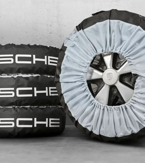 For clean storage of complete wheels: the Porsche Classic Wheel Bags (size XL) in a set of 4 for tire sizes ranging from 17 to 21 inches (tire circumference of 2071 mm to 2310 mm and a diameter of 661 mm to 735 mm).