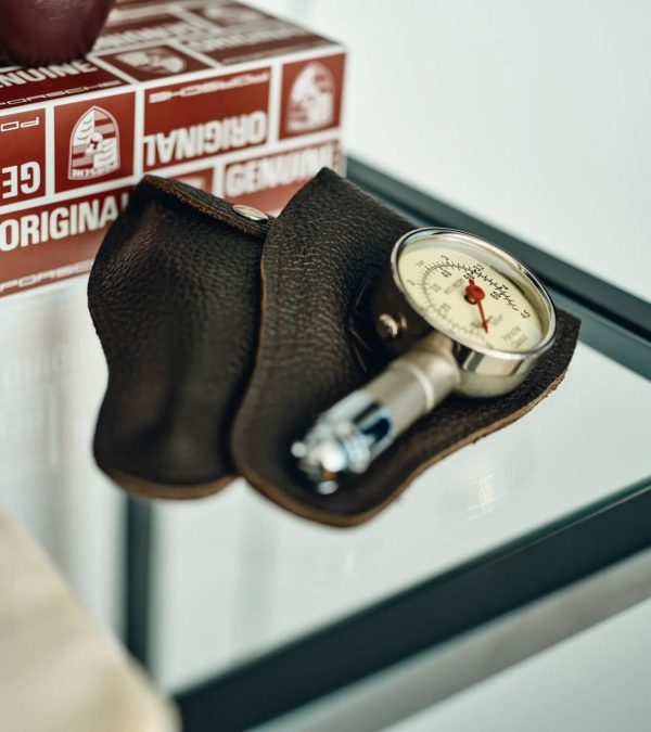 Porsche Classic tire pressure gauge with leather case for all Porsche Models.