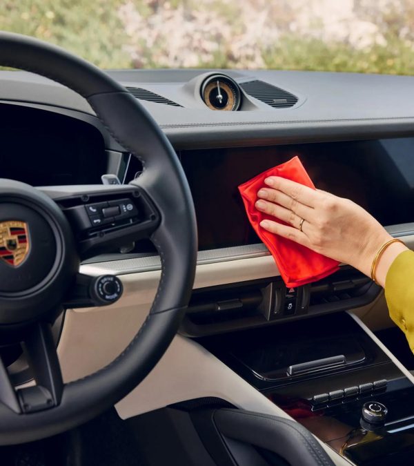 Elevate your cleaning routine with our high-quality black microfiber cloth, featuring an embossed ‘PORSCHE’ logo